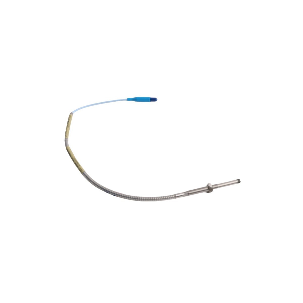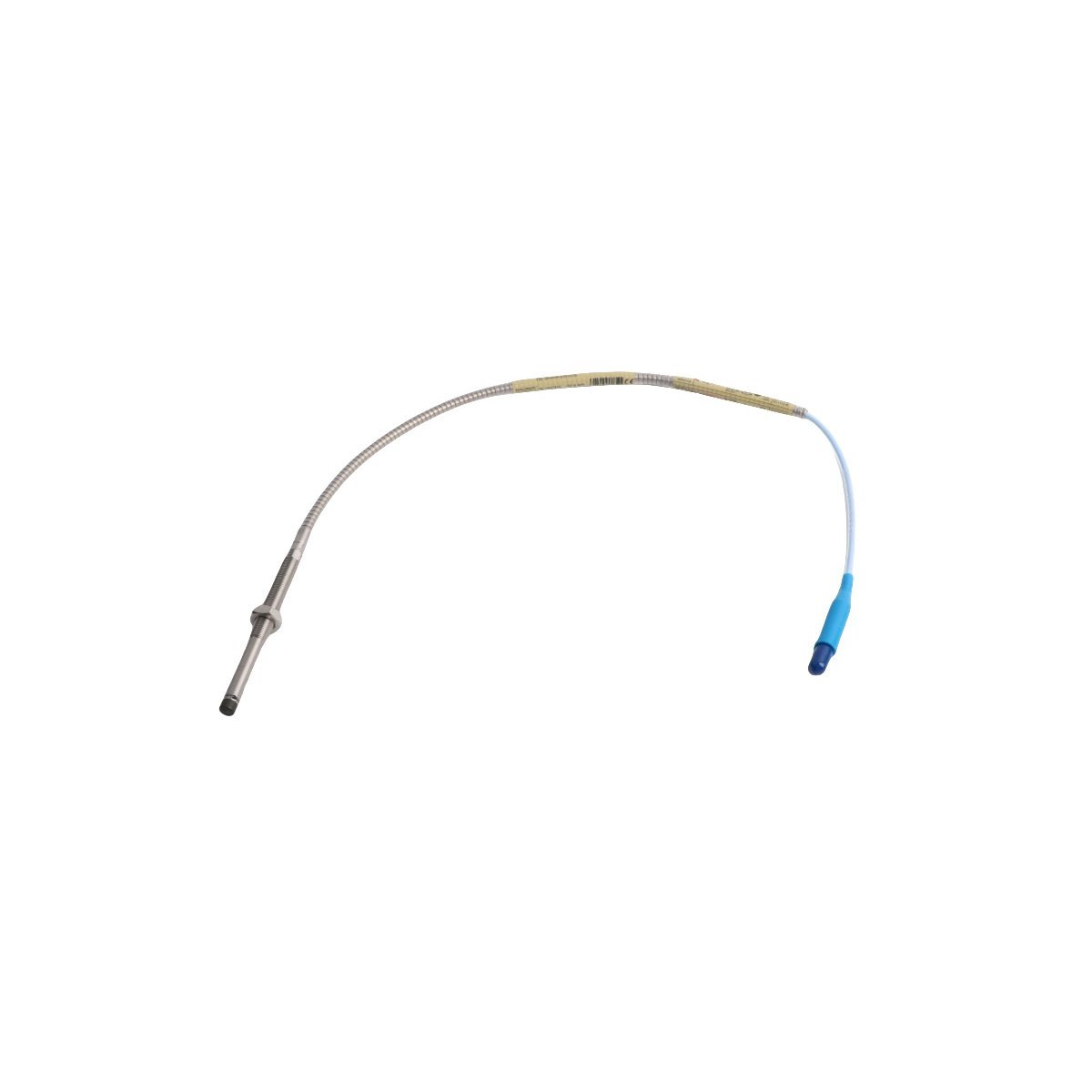 This is a non-contact eddy-current proximity probe designed for continuous displacement and vibration monitoring of rotating machinery.