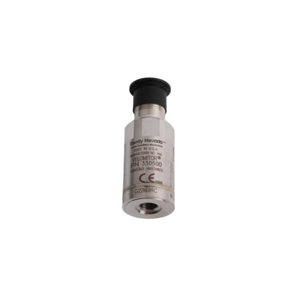 The Bently Nevada 330500-00-02 Velomitor Piezo-velocity Sensor is a high-reliability, industrial-grade vibration sensing solution engineered for continuous, real-time monitoring of rotating and reciprocating machinery. Manufactured by Baker Hughes (formerly Bently Nevada), a global leader in condition monitoring and predictive maintenance technologies, this sensor delivers precise velocity-based vibration measurements critical for early fault detection and asset health assessment. Unlike accelerometers or displacement probes, the 330500-00-02 utilizes a hermetically sealed piezoelectric ceramic element coupled with an integrated low-impedance voltage amplifier—enabling direct output of velocity-in-volts (V/in/s or V/mm/s) without external signal conditioning. Its rugged stainless steel housing, IP68-rated environmental protection, and broad operational temperature range (–65 °F to +250 °F / –54 °C to +121 °C) ensure consistent performance in demanding industrial settings—including offshore platforms, power generation facilities, petrochemical refineries, and heavy manufacturing plants. The sensor is supplied in new, factory-fresh condition, backed by a standard 24-month limited warranty from the date of shipment. Assembled in the United States, it complies with RoHS, CE, and ATEX directives (Category 3G, Zone 2), affirming its suitability for hazardous locations. With a compact cylindrical form factor (1.00 in diameter × 2.75 in length), low mass (5.2 oz / 147 g), and minimal mounting footprint, the 330500-00-02 integrates seamlessly into existing Bently Nevada 3500/3300 monitoring systems and third-party PLC/DCS architectures via standard 10–32 UNF stud or magnetic base mounting. Its intrinsic wide dynamic range (0.01 to 200 in/s peak), flat frequency response (4.5 Hz to 1,000 Hz ±5%), and negligible phase shift (<2° across operating band) make it ideal for detecting incipient bearing defects, gear mesh anomalies, imbalance, misalignment, and resonance conditions before catastrophic failure occurs.