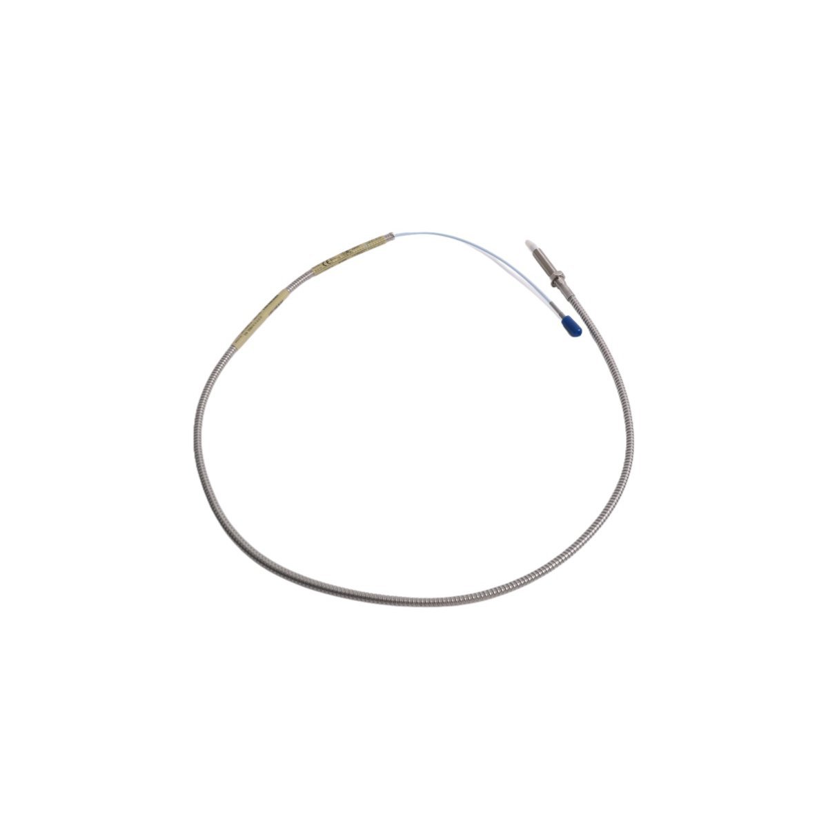 This is a non-contact eddy-current proximity probe designed for continuous displacement and vibration monitoring of rotating machinery.