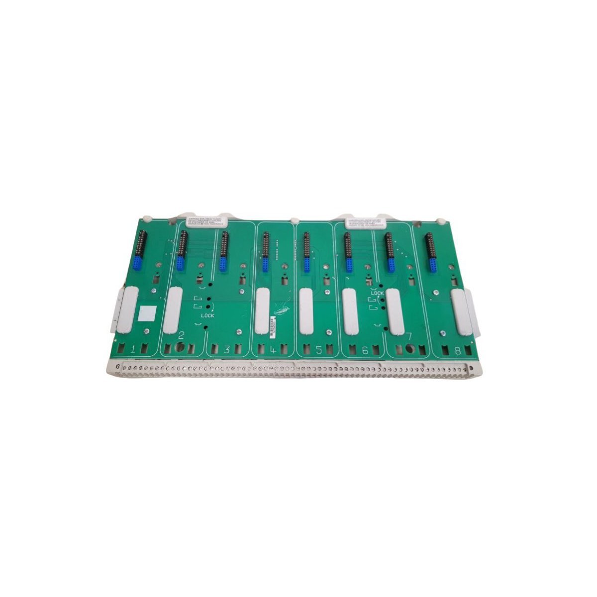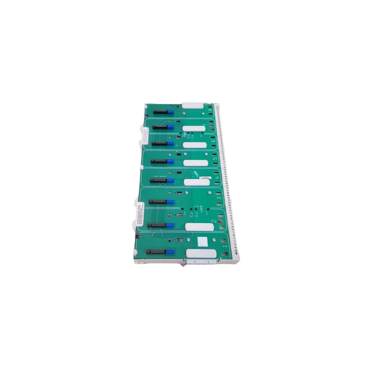 The General Electric 8709-CA-08 is a specialized backplane carrier designed for the SafetyNet and PAC Systems architectures. It provides the essential physical and electrical infrastructure for mounting I/O modules, facilitating high-speed Railbus communication and field power distribution.