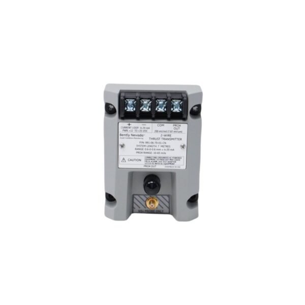 The Bently Nevada 991-06-70-02-01 Thrust Transmitteris a specialized thrust transmitter designed for OEMs of centrifugal compressors and rotating equipment. This 2-wire loop-powered device converts proximity probe signals into industry-standard 4-20mA outputs for seamless integration with machinery control systems.