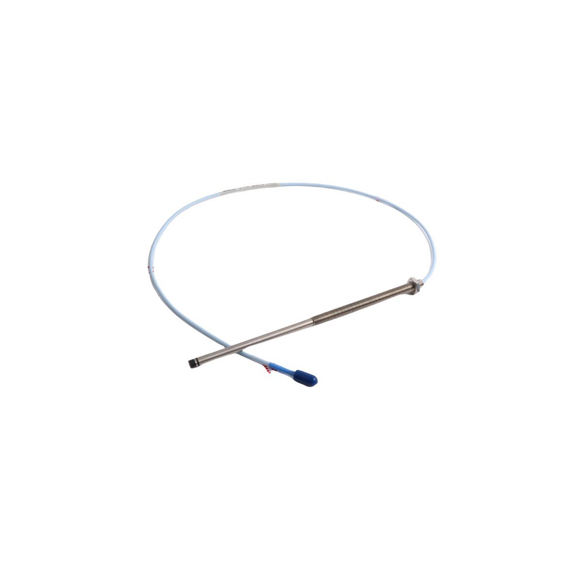 This proximity probe utilizes a specialized 3/8-24 threaded body design for precise mechanical installation and gap adjustment. Furthermore, the tip is constructed from high-strength polyphenylene sulfide (PPS) to withstand the high-pressure and high-temperature environments common in steam turbines and industrial compressors. In addition, the integrated cable is terminated with a gold-plated ClickLoc coaxial connector, ensuring a moisture-resistant and vibration-proof link to the extension cable. Consequently, the sensor maintains a consistent 7.87 V/mm (200 mV/mil) scale factor, providing the high-resolution feedback necessary for safety-critical automated shutdown protocols.